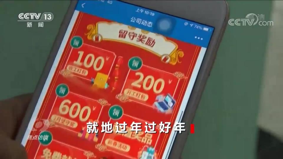 異地務(wù)工人員范海亮說:“在法定假日工作規(guī)定的三倍工資之外,額外每天還給予200元的留守獎勵,大年三十當(dāng)天12到16道菜不等,有拔河比賽,還有抽獎活動。因為留守過年,公司也比較人性化,抽了一些獎品幫我們郵寄回家,替自己盡孝心!
