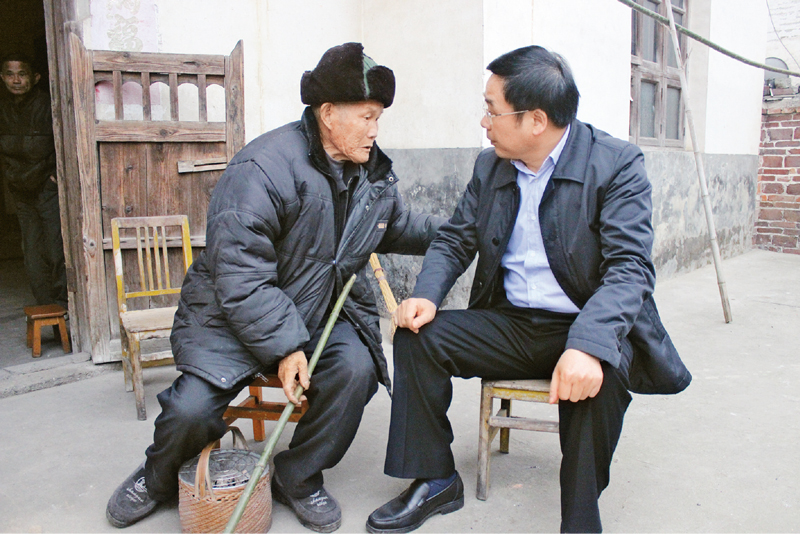 黃詩(shī)燕始終把黨和人民的事業(yè)作為最高追求,堅(jiān)持真扶貧、扶真貧,以行動(dòng)詮釋赤誠(chéng),以赤誠(chéng)贏得民心。當(dāng)?shù)馗刹咳罕娚钋楦锌骸八菫槔蠀^(qū)扶貧而來,也是為脫貧攻堅(jiān)而去的!眻D為2015年2月11日,黃詩(shī)燕在三河鎮(zhèn)西臺(tái)村坳下組看望優(yōu)撫對(duì)象。 湖南省委宣傳部供圖