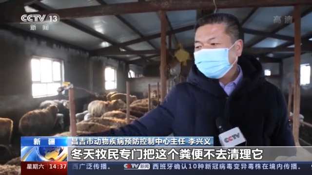 昌吉市動(dòng)物疾病預(yù)防控制中心主任 李興義:冬天牧民專門(mén)把這個(gè)糞便不去清理它,厚厚的這一層糞便,發(fā)酵以后它產(chǎn)生一定熱量,羊在這個(gè)糞便上,就像溫床一樣的,起個(gè)保暖作用。