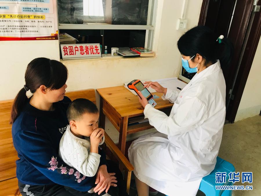 廣西樂(lè)業(yè)縣新化鎮(zhèn)百坭村群眾通過(guò)“村醫(yī)通”系統(tǒng)現(xiàn)場(chǎng)進(jìn)行醫(yī)療費(fèi)用結(jié)算(2020年2月12日攝)。新華社發(fā)(廣西壯族自治區(qū)醫(yī)療保障局供圖)