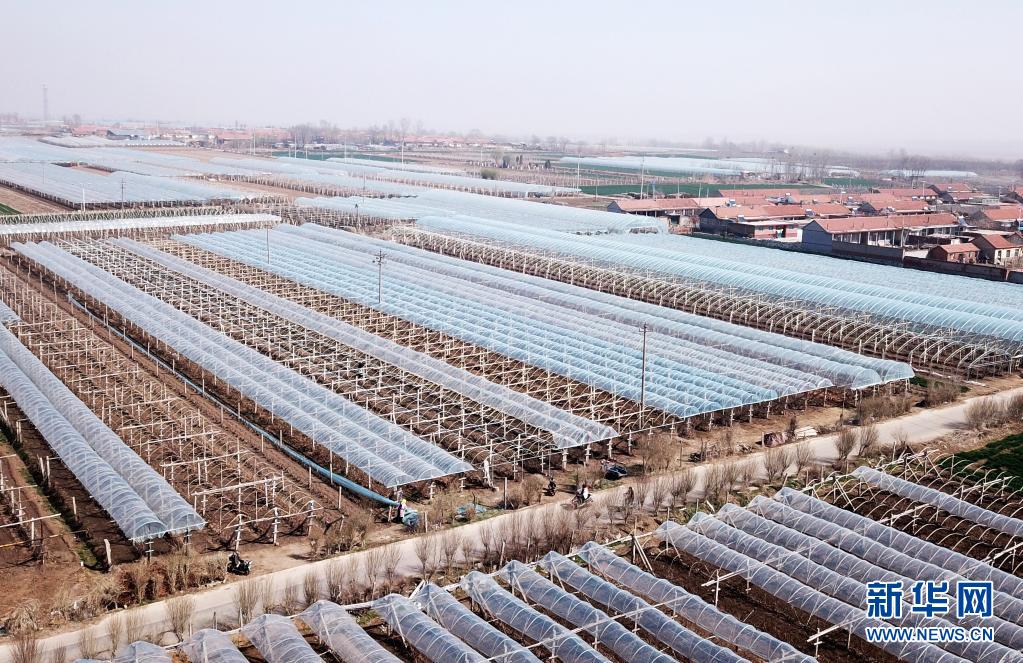 青島萊西市溝東村新擴(kuò)建的葡萄種植大棚(無人機(jī)照片,3月25日攝)。新華社記者 李紫恒 攝