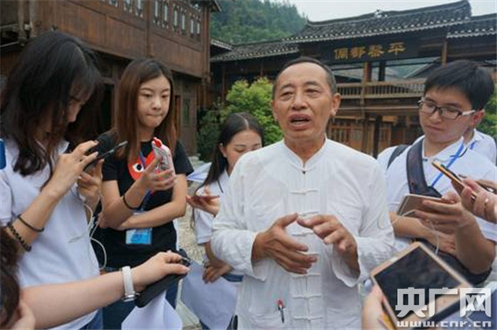 肇興侗族文化博物館館長(zhǎng)陸根茂正在接受記者采訪。(央廣網(wǎng)記者 王赫迪 攝)