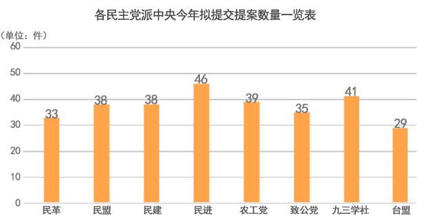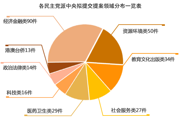 據(jù)初步了解,目前民革、民盟、民建、民進(jìn)、農(nóng)工黨、致公黨、九三學(xué)社、臺(tái)盟今年擬向全國政協(xié)提交提案共計(jì)334件(其中,黨派中央提案共299件,九三學(xué)社界別提案35件),涉及經(jīng)濟(jì)金融、資源環(huán)境、教育文化、醫(yī)藥衛(wèi)生、社會(huì)服務(wù)、科學(xué)技術(shù)等各領(lǐng)域。