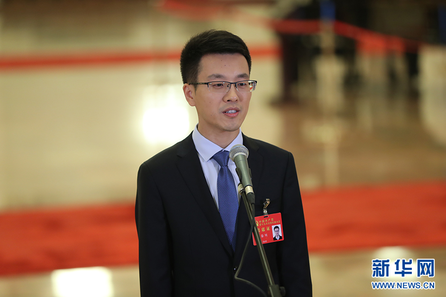 10月19日,“黨代表通道”第二場(chǎng)采訪活動(dòng)在人民大會(huì)堂舉行。圖為徐川代表接受采訪。新華網(wǎng) 翟子赫 攝