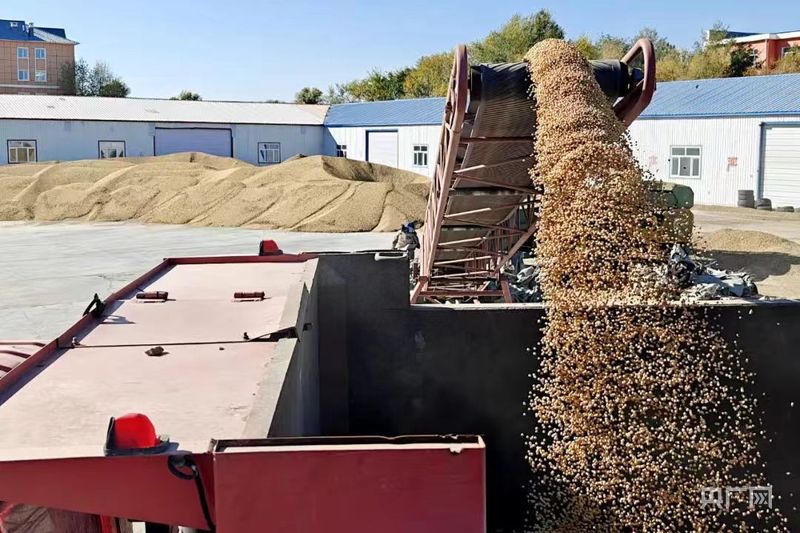 一顆顆飽滿的“金豆子”在陽光下閃耀著豐收的光芒(央廣網(wǎng)發(fā) 阿榮旗融媒體中心供圖)