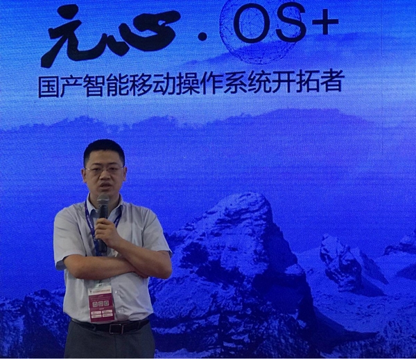 元心科技移動政務事業(yè)部總經理林明祥向媒體做雙系統(tǒng)手機演示