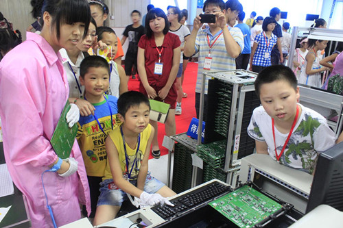 “長虹電視探索之旅”歡迎程度超出預想,不得不增加臨時班次。長虹公司工會主席胥邦君告訴記者,讓員工子女零距離感受現(xiàn)代規(guī);I(yè)生產(chǎn)工廠氛圍,不僅有利于推進員工關(guān)系建設,打造以員工滿意為核心理念的夯實企業(yè)文化,也有利于這些長虹小家人們理解父母的工作,增進家庭內(nèi)部溝通,是一舉多得的好事情。