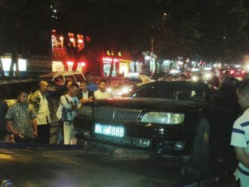 22日晚8時許,在內(nèi)江市中區(qū)臨江小區(qū),一輛車號為川K17888的豐田皇冠轎車突然出現(xiàn),將另一輛川K17888車牌號的尼桑轎車攔在路邊,與此同時,另一輛轎車則從后面堵死住尼桑轎車的后路。豐田車主隨即報警。