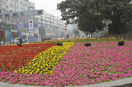 除此以外,東升街道南昌路、紫東閣街、廣場(chǎng)賓館等地,將本著勤儉節(jié)約的原則,在原有的基礎(chǔ)上,新增鮮花,將它們一一扮靚。記者走訪各處觀察到,由郁金香、報(bào)春花、三色堇、杜鵑花等十余類(lèi)花卉拼排的鮮花方陣賞心悅目。紫色、紅色、黃色……各種顏色的花朵絢爛多彩,將廣都大地裝點(diǎn)得春韻十足。