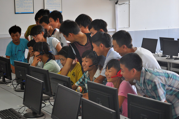 學生們在使用可視親情電話
