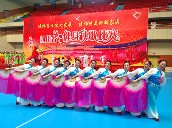 據(jù)了解,興文縣健身秧歌隊作為宜賓市參賽的兩支隊伍之一,參加了日前在雅安市體育館舉行的“促體育文化大發(fā)展,建和諧美好新家園”2013年四川省健身秧歌比賽,經(jīng)過三天的角逐,興文縣代表隊在34支參賽隊中脫穎而出,以飽滿的熱情、優(yōu)美的舞姿、新穎的動作分別獲得了不分年齡組別自選套路的銀獎和中老年組規(guī)定套路的金獎,并獲取了參加全國比賽的資格。