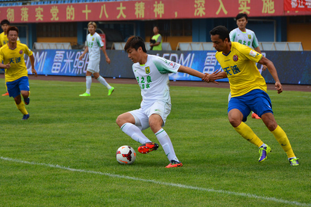 央廣網(wǎng)成都5月12日消息(記者隆敏 馬鮮)5月11日,2014賽季中甲聯(lián)賽第9輪最后一場比賽在都江堰市鳳凰體育場開戰(zhàn)。成都天誠在主場迎來此前未嘗勝績的廣東日之泉。急需取得一場勝利的廣東日之泉憑借葉偉超和余劍鋒上下半場的兩粒入球兩次領(lǐng)先,但無奈成都天誠同樣在上下半場利用王鍇和布里斯的兩粒入球兩度將比分扳平。這場保級圈的焦點之戰(zhàn),最終以2:2握手言和。