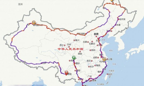 王雪騎行的規(guī)劃路線。(圖據(jù)網(wǎng)絡(luò))