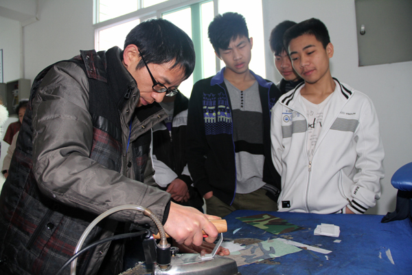 12月18日上午,江安縣職業(yè)技術(shù)學(xué)校實訓(xùn)大樓,裁剪、熨燙、縫紉,王大軍正在為2012級服裝1班學(xué)生詳細講解開裙衩的方法技巧,作為學(xué)校特聘的服裝專業(yè)實訓(xùn)指導(dǎo)教師,他要承擔這個專業(yè)所有班級的實訓(xùn)課,不僅如此,還兼任了2012級服裝1班的班主任。
