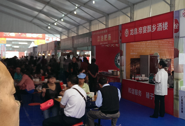 展銷會的小吃展區(qū)擠滿了人