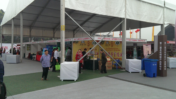 記者5日中午在綿陽九州體育館邊上的展銷會現(xiàn)場看到,不但有各地的特色農(nóng)產(chǎn)品、日用品,綿陽本地產(chǎn)的金杯、野馬汽車也單獨設(shè)點,但幾乎沒有參觀的人。零零星星的參觀者懶散游蕩在各個攤位之間,偶爾有參觀者購買了部分木耳等產(chǎn)品,大多數(shù)展位前冷冷清清門可羅雀。生意最好的要數(shù)小吃展區(qū),幾張簡易的座位上,已經(jīng)擠滿了人。