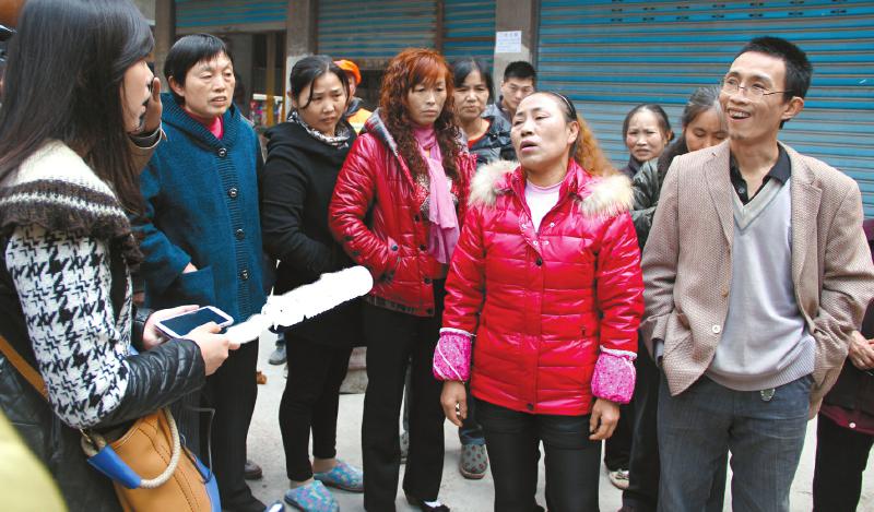 現(xiàn)場目擊者向記者介紹情況。