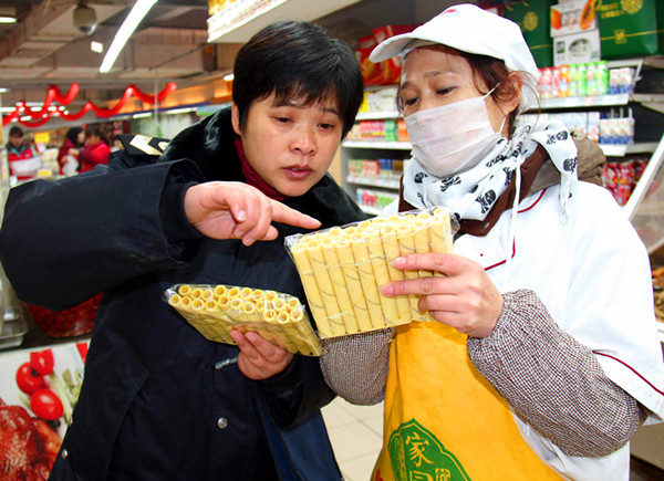 1月23日,執(zhí)法人員在超市里嚴(yán)檢查食品,確保市民“舌尖上的安全”