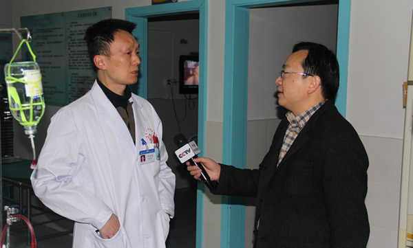 腎病內(nèi)科透析室主任接受央視記者采訪。