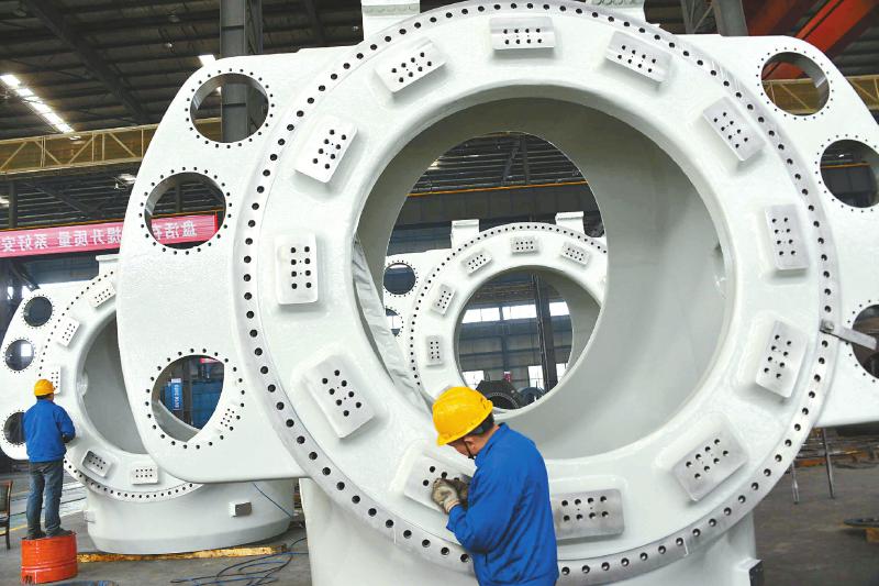 四川仟坤集團鑫坤機械重型車間工人在生產(chǎn)風機輪轂。寇元林 攝(視覺四川)