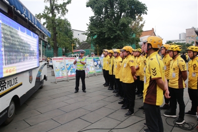 同一天,成都市交管三分局民警,對(duì)餓了么外賣平臺(tái)近百名外賣小哥分別從城市道路交通安全法規(guī),城市道路交通安全事故的處理,城市道路交通安全意識(shí)的培養(yǎng)及文明交通行為倡導(dǎo)等幾方面,給近百名送餐騎手和管理人員“漲姿勢(shì)”。