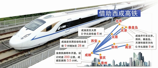 同時(shí),成都、重慶還將開行至太原的D字頭動(dòng)車組6對(duì),開行至北京、鄭州、秦皇島、天津和南京等方向的G字頭長(zhǎng)途高速動(dòng)車組9對(duì)。其中,成都東至北京西的G90次,全程運(yùn)行僅7小時(shí)47分鐘,較目前最快的G310次蓉京高速動(dòng)車組壓縮約一半的時(shí)間。
