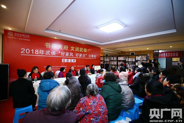 央廣網(wǎng)成都1月28日消息(記者韓民權(quán))為踐行社會主義核心價值觀,使文化融入百姓生活。1月27日,由成都市武侯區(qū)圖書館主辦的“書香天府?文潤武侯‘好家風(fēng) 好家訓(xùn)’分享會”第一站走進(jìn)成都武侯區(qū)玉林街道,將文化活動送到基層市民身邊。當(dāng)天,成都民俗學(xué)家與市民代表們分享了自己的好家風(fēng)故事,并將優(yōu)秀的家風(fēng)家訓(xùn)存入了“家風(fēng)銀行”。
