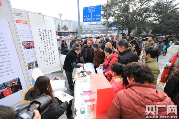 在主題展區(qū)共有四大主題內(nèi)容,分別是武侯區(qū)圖書館、社會主義核心價值觀、好家風(fēng)和十九大精神,展區(qū)內(nèi)設(shè)有有獎答題互動活動。同時,在好家風(fēng)主題展區(qū)設(shè)有現(xiàn)場書法寫作區(qū),市民朋友將自家優(yōu)秀的家風(fēng)家訓(xùn)或家譜口述出來由書法老師現(xiàn)場寫作并贈送。展區(qū)與成都市武侯區(qū)玉林北路社區(qū)“家風(fēng)銀行”相結(jié)合,市民們在現(xiàn)場辦理了“家風(fēng)銀行”存折,將好家訓(xùn)家規(guī)像錢一樣存入“家風(fēng)銀行”,星火相傳,讓后人銘刻在心、代代受益。