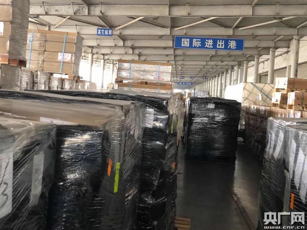 中國國航成都貨運站貨物一級監(jiān)管區(qū)內(nèi)的海關(guān)查驗區(qū)(央廣網(wǎng)記者樊承志 攝)
