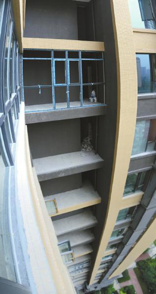 6日,成都匯源北路一小區(qū),鄰居打穿房屋外墻欲將結(jié)構(gòu)板改造成“陽臺”,與旁邊住戶客廳的陽臺緊緊挨在一起。