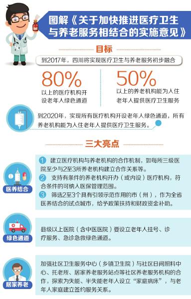 四川出臺《加快推進醫(yī)療衛(wèi)生與養(yǎng)老服務(wù)相結(jié)合的實施意見》到2017年,80%以上醫(yī)療機構(gòu)開設(shè)老年人就醫(yī)綠色通道