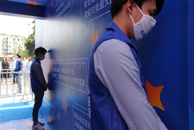 東廣場搭起了一座藍色的房子,這是四川省關(guān)心下一代工作委員會、西南兒童醫(yī)院等承辦的“有你,我們不孤獨”關(guān)愛自閉癥公益體驗活動的自閉癥體驗館。在廣場上,不少志愿者主動向游客、市民介紹關(guān)愛活動,并為他們系上象征關(guān)愛“星星的孩子”的藍色絲帶。