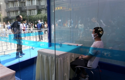 最特別的體驗區(qū),是兩間獨立的玻璃房子。4月1日,成都商報記者也走進了體驗區(qū)的玻璃房子,這是一個密閉空間,除了右側(cè)和身后是隔離板,左側(cè)和前方都是玻璃,可以看到往來的人群。