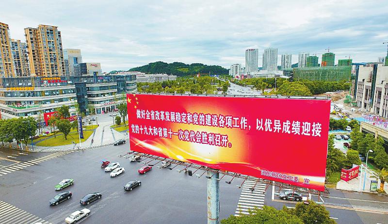 遂寧市在市區(qū)街頭設(shè)置了迎接省第十一次黨代會召開的巨幅標(biāo)語牌。