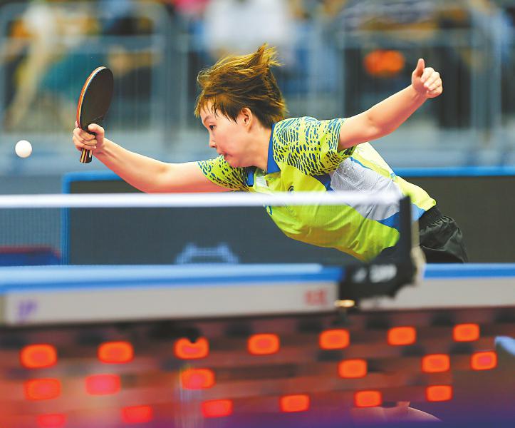 朱雨玲在全運(yùn)會(huì)乒乓球女團(tuán)決賽中。本報(bào)記者 尹鋼 攝