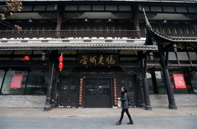 14日,市民走過已“閉店停業(yè)”的蓉城老媽火鍋北門店