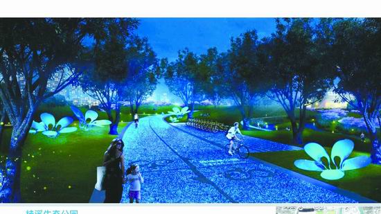 此外,錦城綠道一期還將打造一段熒光綠道——在綠道上鋪設(shè)白天吸收光熱、晚上發(fā)光的熒光石。一到夜晚,熒光綠道色彩斑斕,猶如行走在銀河。