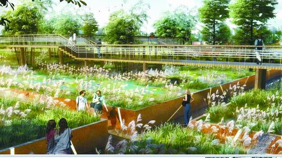 在中和濕地公園,將設(shè)置生態(tài)科普?qǐng)@特色園,其中包括功能濕地、蘆塘戲魚(yú)、曲塔幽風(fēng)、稻香人家、棧橋觀鳥(niǎo)等景點(diǎn)。在花田濕地,設(shè)置極具田園特色的稻香蛙鳴、田園瓜棚作為驛站。