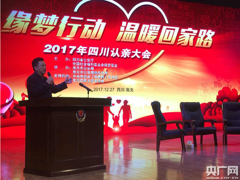 央廣網(wǎng)成都12月27日消息(記者劉濤)12月27日上午,“緣夢(mèng)行動(dòng),溫暖回家路”2017四川大型認(rèn)親大會(huì)在南充順慶大禮堂舉行。7名被拐20多年的受害人,與家人得以團(tuán)聚。