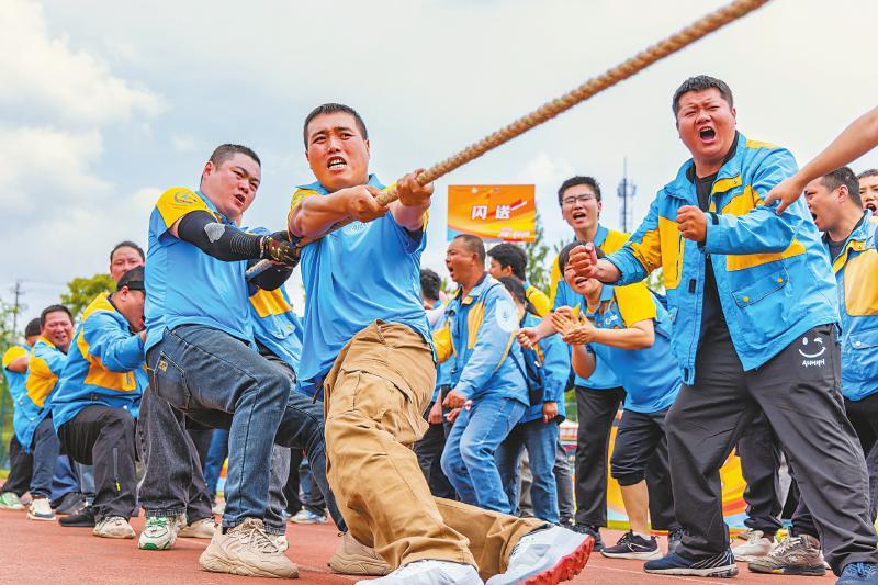 首次參賽、和隊(duì)友合作拿到拔河冠軍的陳磊,一手拿著獎(jiǎng)牌、一手拿著獎(jiǎng)品笑著說:“平時(shí)在物流倉儲(chǔ)基地搬運(yùn),力氣再大也沒人知道,今天比賽終于讓我好好展示了一把!”