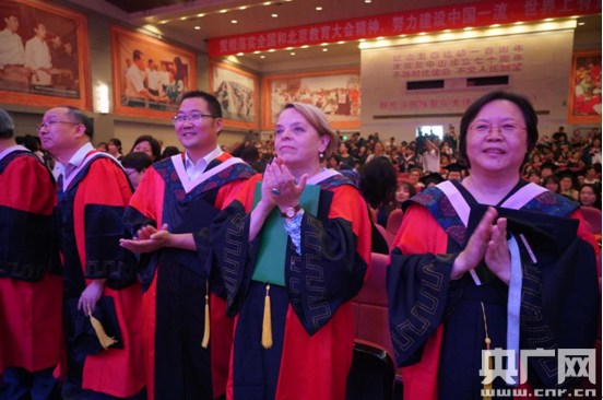 北二外與全球40多個(gè)國(guó)家、地區(qū)的170余所高校和教育機(jī)構(gòu)建立了全方位、多層次、實(shí)質(zhì)性的交流與合作。今年的研究生專場(chǎng)畢業(yè)典禮,該校研究生雙學(xué)位項(xiàng)目合作院校俄羅斯圣彼得堡國(guó)立大學(xué)新聞系外方導(dǎo)師茨維托娃教授也專程前來參加活動(dòng)。圣彼得堡國(guó)立大學(xué)在俄羅斯甚至世界發(fā)展中占有重要地位,列寧、屠格涅夫、波波夫、現(xiàn)任總統(tǒng)普京、現(xiàn)任總理梅德韋杰夫等均曾就讀于此,國(guó)家主席習(xí)近平于今年6月接受該校名譽(yù)博士學(xué)位。俄羅斯圣彼得堡國(guó)立大學(xué)茨維托娃教授認(rèn)為,習(xí)主席接受圣彼得堡國(guó)立大學(xué)名譽(yù)博士學(xué)位讓他們備感榮幸,圣彼得堡國(guó)立大學(xué)愿意進(jìn)一步加強(qiáng)與中國(guó)高校特別是北京第二外國(guó)語(yǔ)學(xué)院的合作,共同推進(jìn)北二外高精尖學(xué)科建設(shè)。