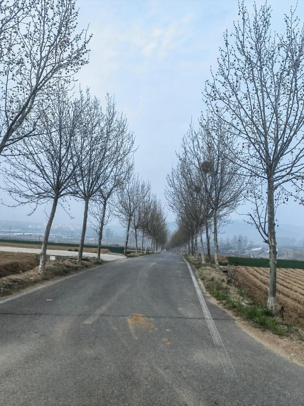 我記得這條路是2022年春,縣、鎮(zhèn)借鞏固脫貧成果、助推鄉(xiāng)村振興之力,改造了原來(lái)狹窄的沙土路,新修通的,南北筆直,路當(dāng)中噴涂著紅藍(lán)黃三色并行的交通標(biāo)志線(xiàn)。新栽的這兩行白蠟樹(shù)長(zhǎng)得很旺相。開(kāi)春,花木爭(zhēng)相斗艷時(shí),它深灰色的枝丫上,剛剛頂出毛茸茸的暗紅的芽苞。不久葉子由嫩綠轉(zhuǎn)為深綠,厚實(shí)且茂密,油光光的,一層疊著一層,密不透風(fēng)。夏天撐開(kāi)一把把綠傘,灑下滿(mǎn)地的濃蔭,把灼人的陽(yáng)光過(guò)濾成稀疏晃動(dòng)的光斑,灑給鄉(xiāng)親們一絲清涼。深秋樹(shù)冠由檸檬黃染成琥珀色,最后飄落滿(mǎn)地金黃。