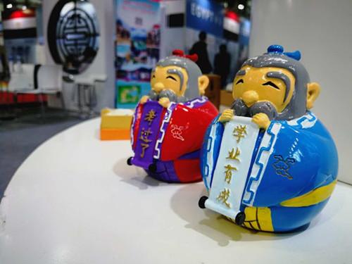 在第十三屆中國(guó)(深圳)文博會(huì)上,最吸引人的山東展示無疑是以孔子為代表的傳統(tǒng)文化元素。與往屆不同的是,幾年前展區(qū)里的巨型孔子銅像變成了“萌萌”的袖珍孔子擺件,一冊(cè)冊(cè)的《論語百句》印在了膠帶、撲克、手環(huán)上……
