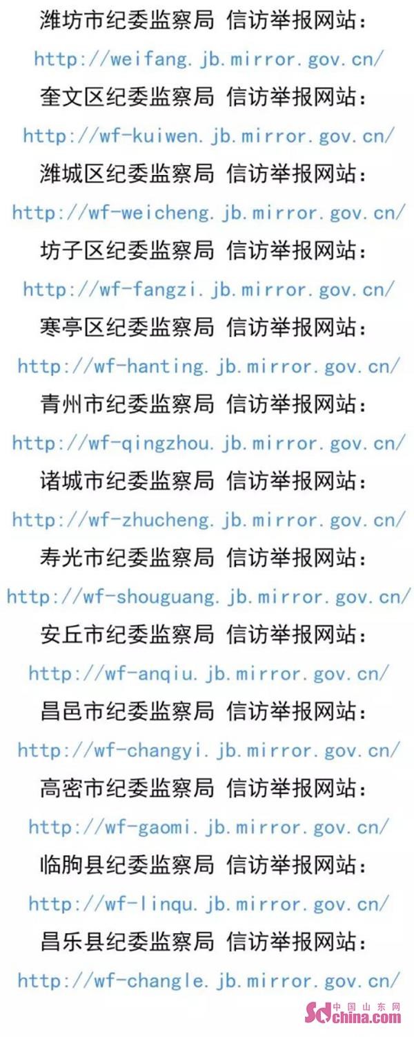 附:濰坊市、縣兩級(jí)紀(jì)檢監(jiān)察機(jī)關(guān)舉報(bào)網(wǎng)站網(wǎng)址