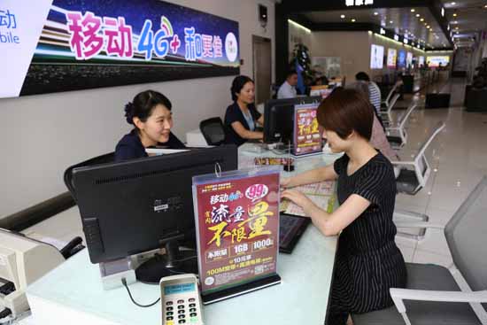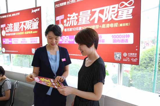 山東移動營業(yè)人員為客戶辦理不限量套餐。