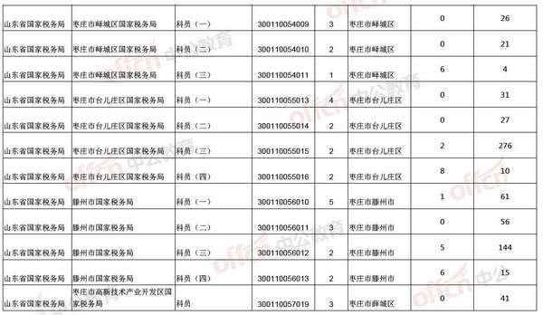 此次“國考”涉及棗莊的崗位有32個(gè),共招錄63人。截至7日16時(shí),涉棗崗位中報(bào)名人數(shù)最多的是棗莊市薛城區(qū)國家稅務(wù)局科員(二)崗位,報(bào)名人數(shù)達(dá)456人。該崗位要求學(xué)歷為本科及以上,不限基層工作最低年限、政治面貌,也不僅限應(yīng)屆高校畢業(yè)生報(bào)考,故吸引的報(bào)考人員較多。