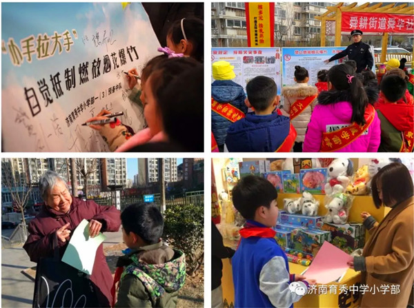 鑄安全 師生們假期開展了“禁止燃放煙花爆竹”的各類倡議活動,發(fā)傳單、條幅簽名、安全宣講。社區(qū)的叔叔阿姨、爺爺奶奶連連為他們豎起大拇指!