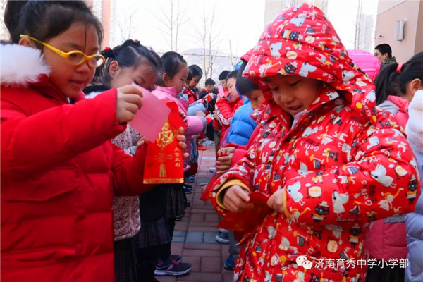 尋年味 假期中,學生們掛燈籠、包水餃、寫百福、剪窗花,一系列的傳統(tǒng)文化活動讓他們不僅鍛煉了動手能力,更知道了什么是年味。