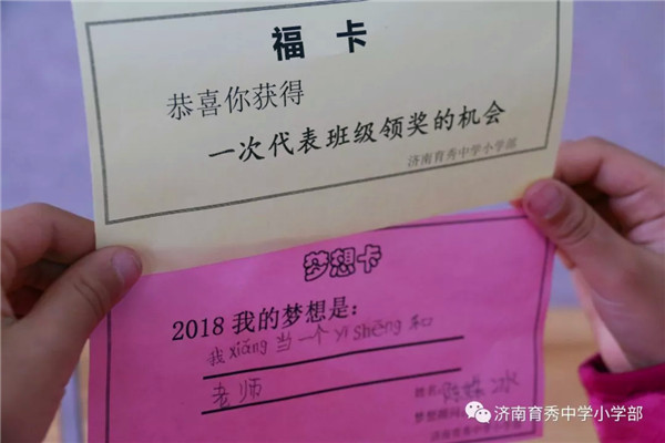 打開紅包,里面有一張"夢想卡"和一張幸運"?"