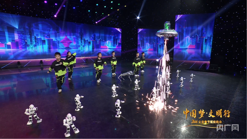 街舞與科技《The show》巧思創(chuàng)意傳統(tǒng)與未來(lái)的隔空對(duì)話,將蓬勃的少年朝氣與前沿的人工智能技術(shù)精妙融合,機(jī)器人與機(jī)器狗的律動(dòng)精準(zhǔn)靈動(dòng),無(wú)人機(jī)冷焰火繪就夢(mèng)幻星河,科技之美燃動(dòng)全場(chǎng)。